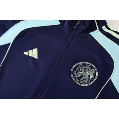 Спортивный костюм «Аякс» сезона 2025/26 в синем исполнении — это тренировочная экипировка, которая традиционно сочетает в себе амстердамский стиль и передовые технологии немецкого бренда. Основные характеристики Цвет: Глубокий темно-синий с контрастными деталями в цвете «светло-голубой». Материал:(100% переработанный полиэстер). Ткань плотная, но дышащая, устойчивая к зацепкам. Материал эффективно впитывает влагу и быстро сохнет, поддерживая комфортную температуру тела во время разминки или прогулки. Дизайн: На груди и бедрах расположены вышитые эмблема клуба (с тремя звездами) и логотип. По бокам — легендарные три полоски.