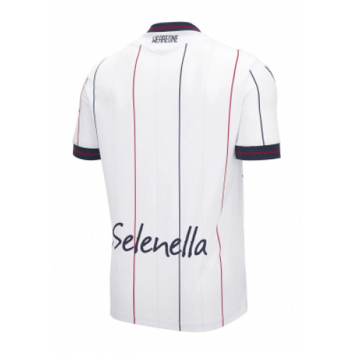 Гостевая форма «Болоньи» сезона 2025/26 от Macron — пример итальянской элегантности и минимализма. Белый фон подчёркивается тонкими вертикальными полосами в фирменных клубных цветах — бордовом и тёмно-синем. Этот лаконичный дизайн напоминает классические футболки «rossoblù» из 70-х, сочетая ретро-настроение с современными материалами. Воротник и манжеты оформлены в контрастных цветах, добавляя акцент и баланс композиции. Надпись Saputo на груди выполнена в бордовом, перекликаясь с элементами на форме. Материал EcoSoftlock обеспечивает лёгкость, вентиляцию и надёжную посадку — идеально для жарких матчей Серии А. Эта форма — воплощение выезда с характером: чисто, строго и с итальянским шиком.