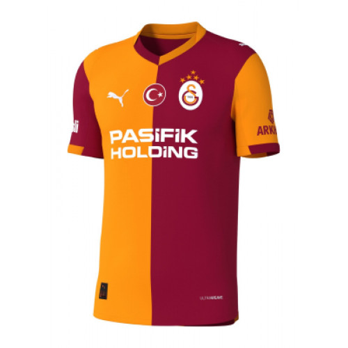 Домашняя футболка «Галатасарай» сезона 2025/26 — это воплощение легендарного стиля, который является символом клуба уже более века. В новом сезоне дизайнеры переосмыслили классику, добавив современные графические элементы. Цвета: Традиционное сочетание насыщенного красного и ярко-желтого. Цвета разделены ровно пополам на груди и спине. Особенность кроя: В сезоне 25/26 рукава также выполнены в контрастном стиле (красный рукав на желтой стороне и наоборот), что создает динамичный визуальный эффект. Графика: На стыке двух цветов или по всей поверхности ткани присутствует тонкий принт в виде геометрических линий, символизирующих энергетику стадиона «Рамс Парк» и фанатского движения. Логотипы: На левой стороне груди — вышитая эмблема клуба с четырьмя золотыми звездами (символ более чем 20 чемпионских титулов). На правой стороне и плечах — логотип.