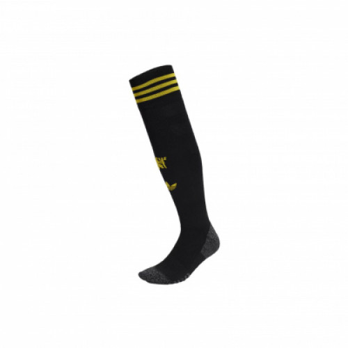 Резервные гетры Manchester United нового сезона - чёрные с яркими жёлтыми полосами, в том же стиле, что и резервный комплект. Смотрятся контрастно и заметно, отлично дополняют форму и дают цельный образ на поле. Гетры плотно сидят на ноге, хорошо держат щитки и не сползают во время игры, подходят для тренировок и матчей. Выбирай размер под рост и обувь, чтобы посадка была максимально комфортной.