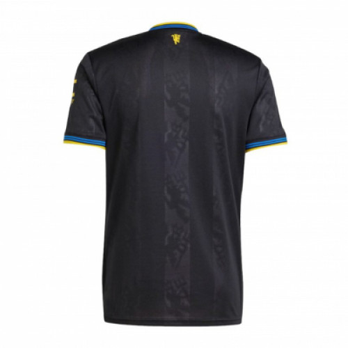 Манчестер Юнайтед футболка резервная 2025/26 Резервная футболка «Манчестер Юнайтед» сезона 2025/26 выполнена в стильной чёрной гамме с контрастными жёлтыми и голубыми акцентами на манжетах и воротнике. Такой дизайн создаёт современный образ, сохраняя при этом клубную идентичность. Особое внимание привлекают детали: затемнённый графический узор на ткани добавляет глубины и динамики, а клубный герб и логотип Adidas выполнены в минималистичном стиле под цвет отделки. Центральное место занимает яркий спонсорский логотип Snapdragon, гармонично вписанный в общий дизайн. Футболка изготовлена из высокотехнологичного материала, обеспечивающего вентиляцию и комфорт даже при высокой интенсивности нагрузки. Это идеальный вариант для фанатов «Юнайтед», которые ценят сочетание традиций и современного стиля.