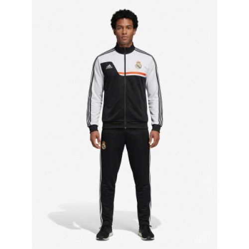 Спортивный костюм в стиле Real Madrid — практичный комплект для тренировок и повседневной носки. Контрастная олимпийка на молнии с высоким воротником, фирменной символикой клуба и динамичной цветовой вставкой спереди. Удобные спортивные штаны с эластичным поясом и эмблемой команды. Отличный выбор для фанатов футбола, активного отдыха и стильных образов в спорт-стиле. Подходит для тренировок, прогулок и повседневной носки.