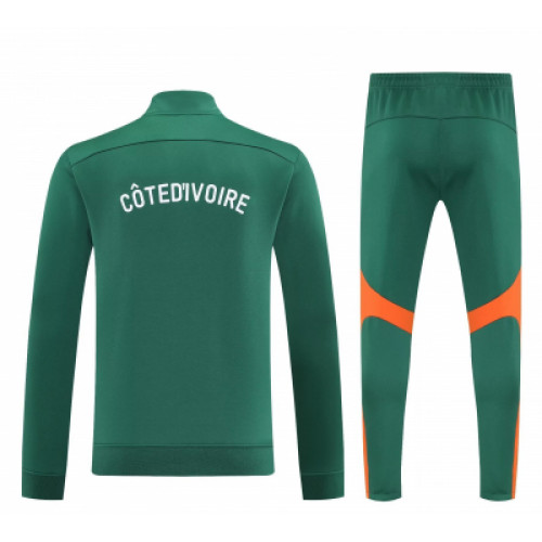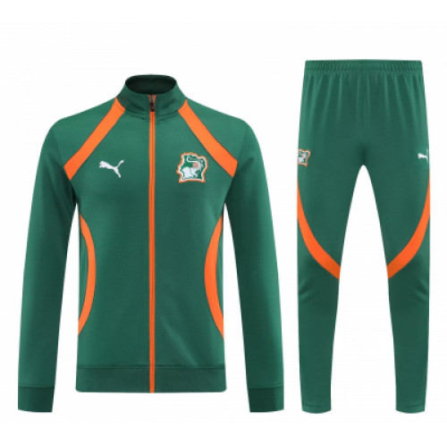 Спортивный костюм сборной Кот-д’Ивуара с насыщенной зелёной базой и яркими оранжевыми вставками — выразительное и гармоничное сочетание для футбольного образа. Олимпийка на молнии с высоким воротником, плавными линиями и эмблемой команды выглядит динамично и современно. Зауженные штаны с эластичным поясом обеспечивают комфорт и удобную посадку. Отличный выбор для тренировок, прогулок и активного отдыха.